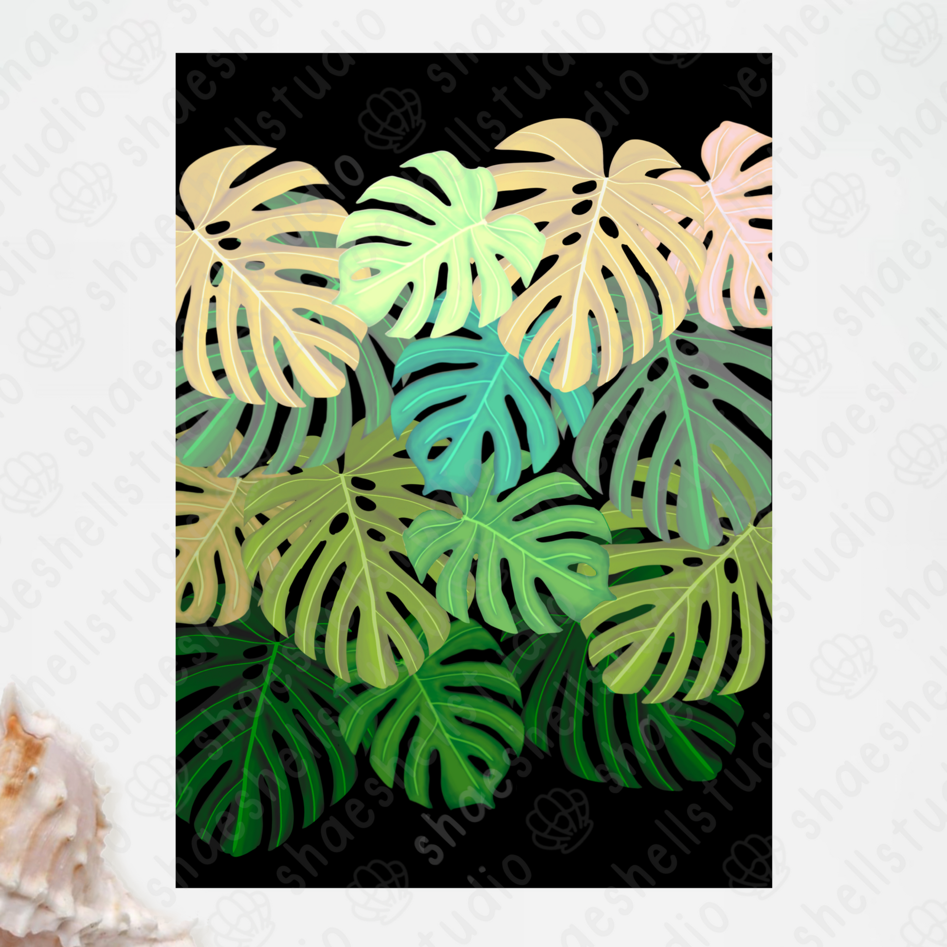 bring the beauty of the tropics and friendship into your space with this hand-illustrated monstera print, printed on luxe champagne pearl paper that catches the light with a soft shimmer.